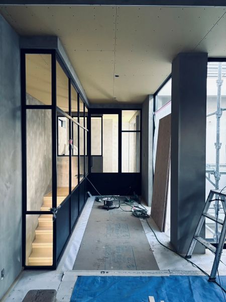 2階リビング入り口 鉄パーテーション設置完了です。