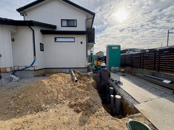 既存母屋の給排水管を移動し整備していきます。
