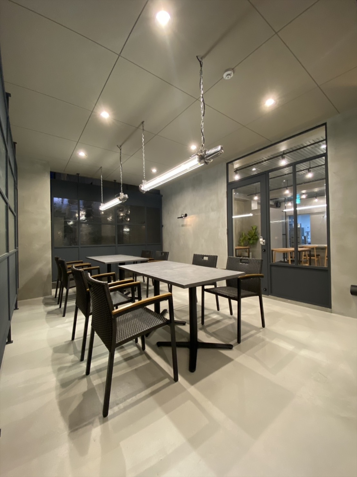 モルタル壁の中に、MORTEXのカウンターテーブルをメインとし